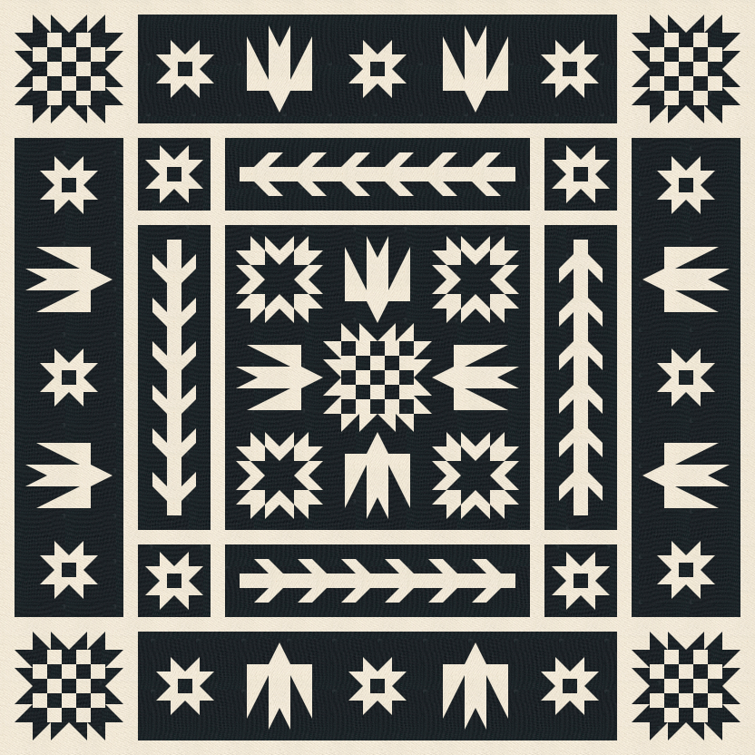 This 2 Tone black and unbleached quilt kit is bold and striking! The unbleached cotton has a nice warm natural tone while still contrastingly nicely with the super black background.