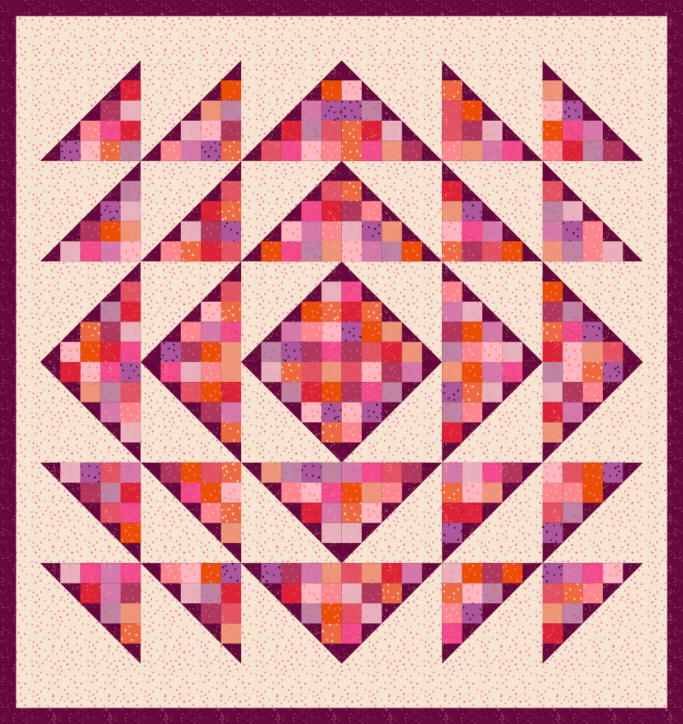 The pattern works well with scraps, pre cuts, and yardage! It's the perfect quilt for mixing your favorite fabrics.