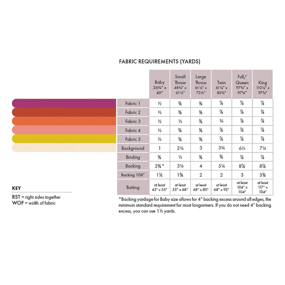 A fun group of Starry prints come together in this throw sized Looperette quilt kit. LOOPERETTE is a unique quilt pattern with modular blocks, meaning they can be rearranged in any direction to create a continuous design. Follow the baby, large throw, and king layouts provided, or get creative and come up with your own version. Either way, the Looperette Quilt is fast, fun, and addictive.