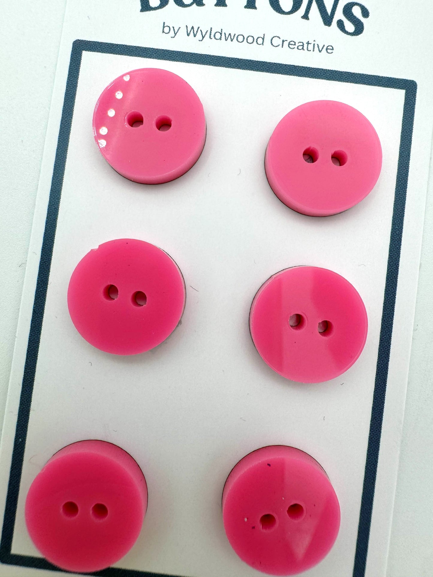 Opaque solid pink buttons. These buttons are perfect for finishing off your garment or bag!
