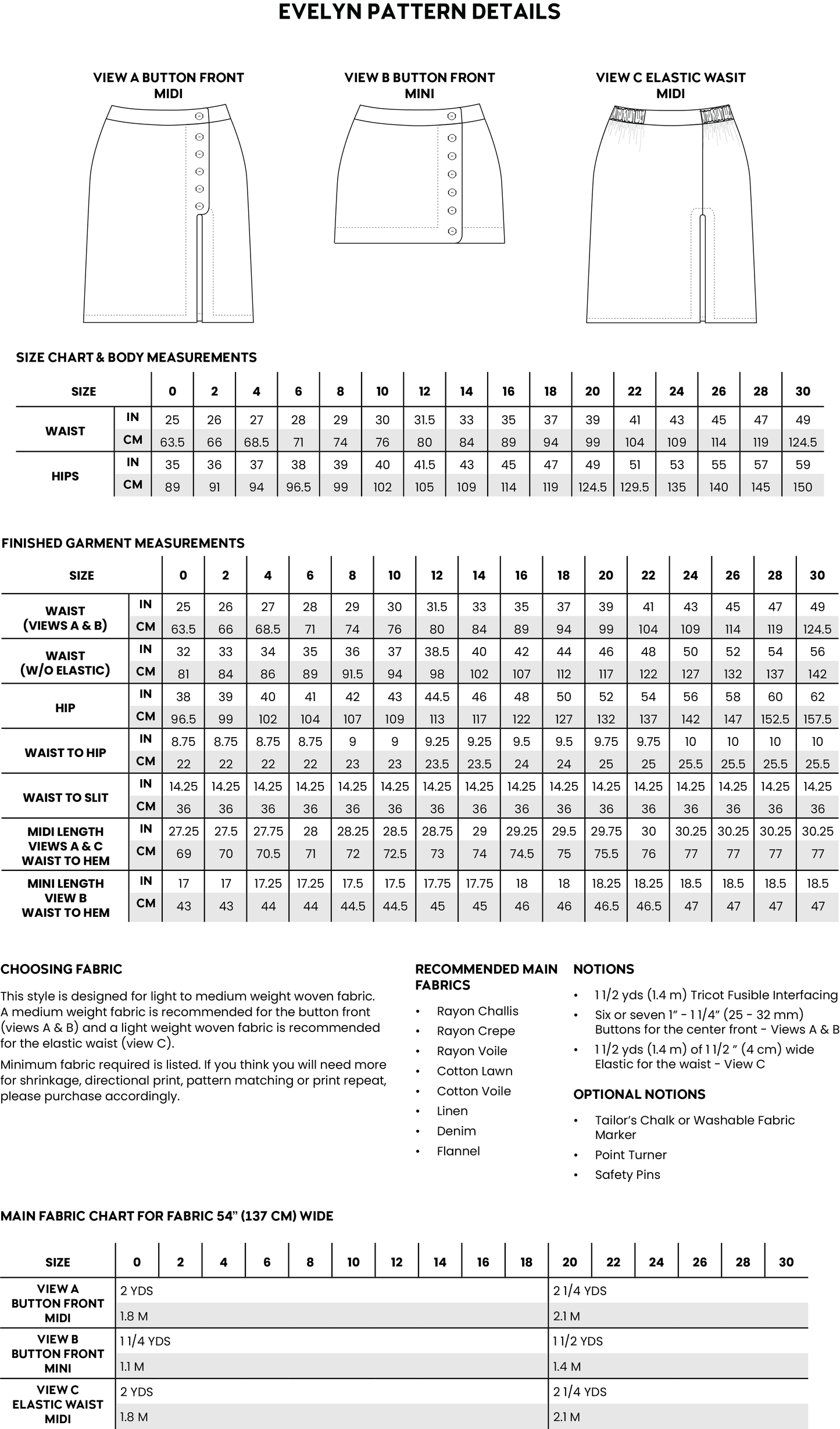 Evelyn Skirt Pattern - Sizes 0-30 (up to 59" hip)