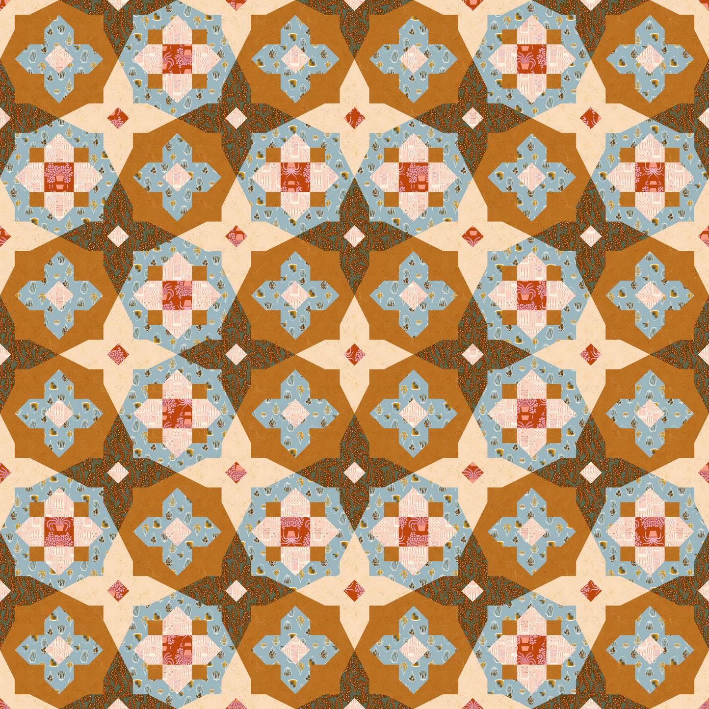 The Garden Glow Quilt by Taylor Krz of Toad & Sew is a block-based quilt pattern inspired by tile floors and intricate mosaics. It’s a follow-up to her popular Sky Cabin Quilt and brings that same bold structure with a fresh, modern layout. Designed with today’s quilters in mind, this fat quarter-friendly pattern is perfect for experimenting with color and layout. Multiple size and layout options make it easy to customize and make it your own.