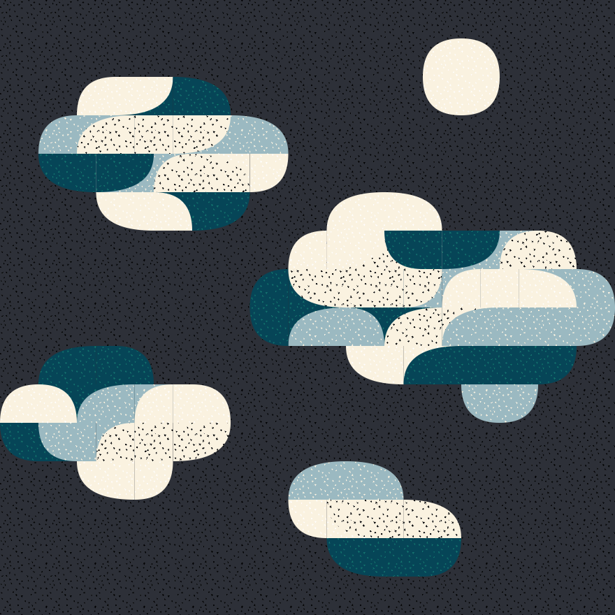 Clouds: Mini White on Natural, Galaxy, Soft Blue, Natural Black