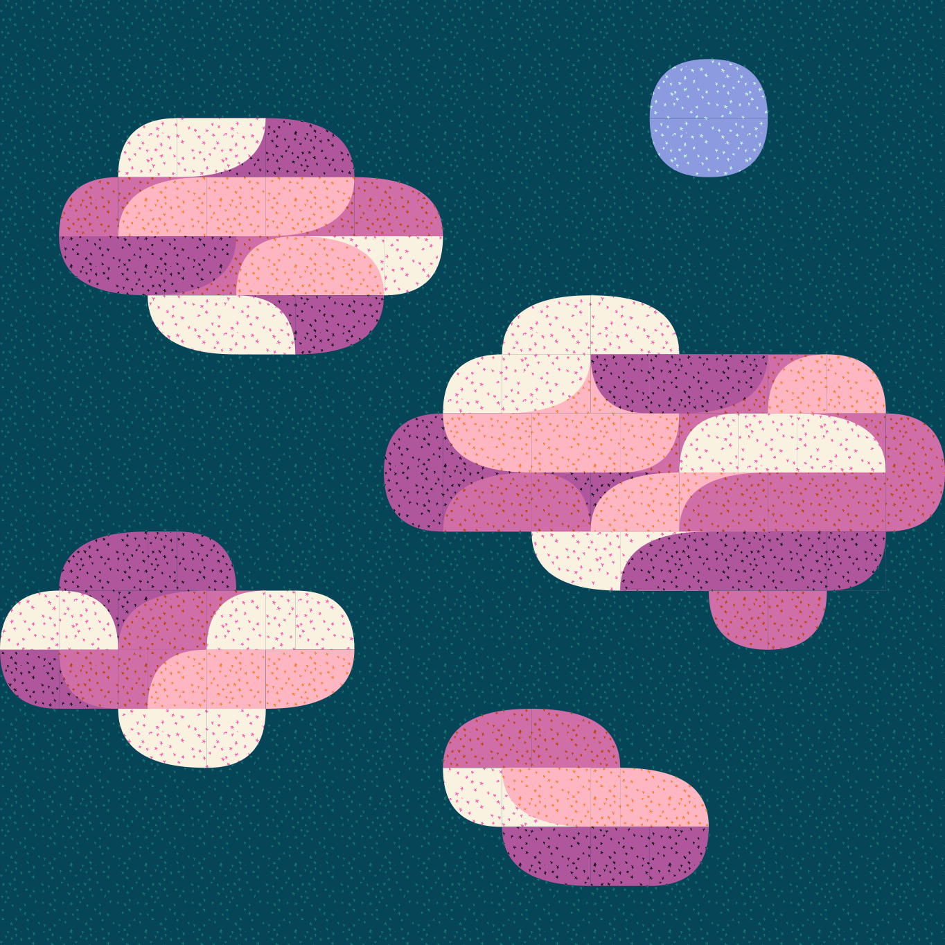 Clouds: Neon Pink, Witchy, Heliotrope, Rosebud