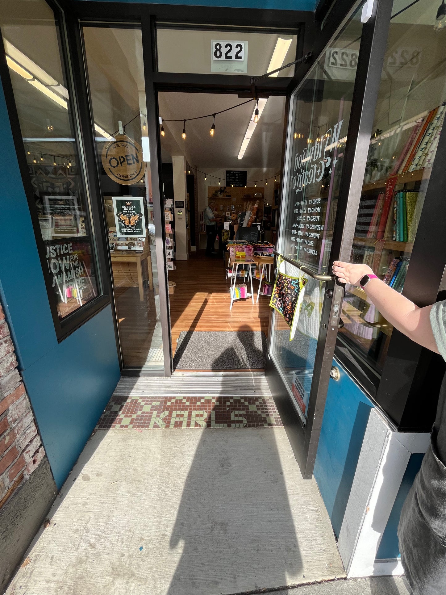 Wyldwood’s entrance has no steps, but a small incline just inside the door. Our front entrance is wide enough for wheelchair access, but we do not have a motorized door. We try to ensure that our shop floor has enough space for mobility aids, but we rearrange often. If something is inaccessible to you, please let us know, and we’ll help!