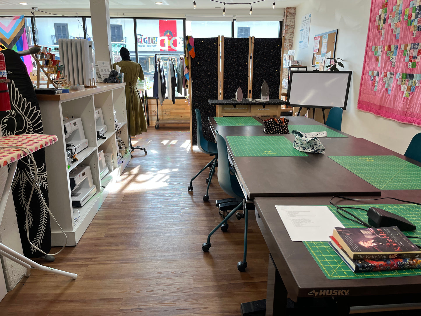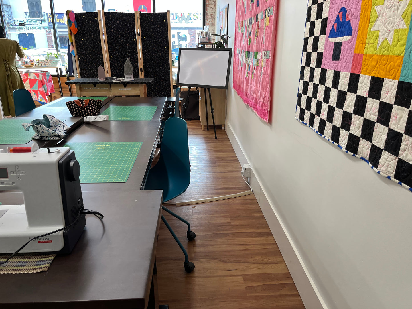 For sewing classes, we provide sewing machines and tools for you to use during the lesson. We have left-handed tools available if you need them. Just let your instructor know, and they will grab you a set.
