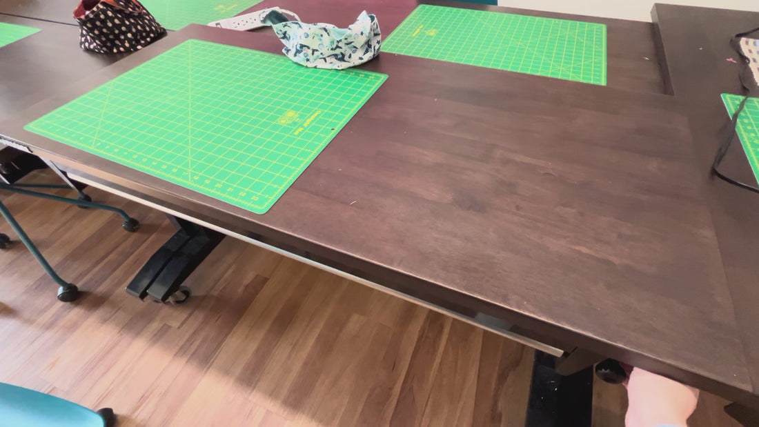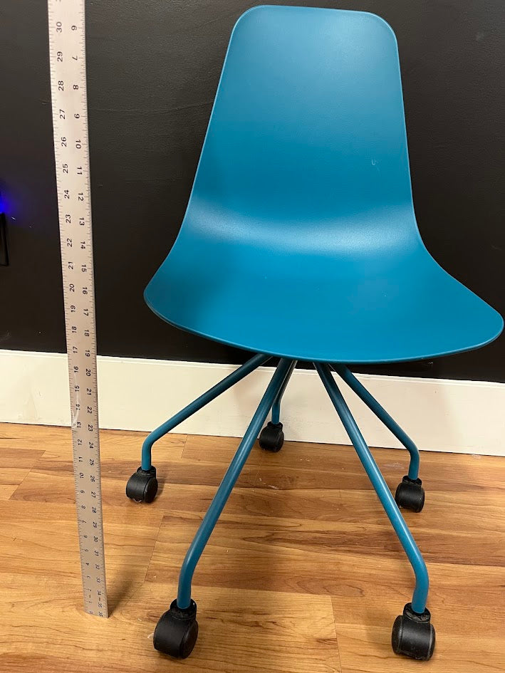 Our classroom is equipped with 5 adjustable height desks, and we have fixed height rolling chairs or stationary chairs. If you have a preference, we’re happy to swap chairs out for you. The desks are on lockable wheels, so if we need to move them for any reason, we can. Both sides of the classroom space are wider than 36inches to allow people to move behind you.