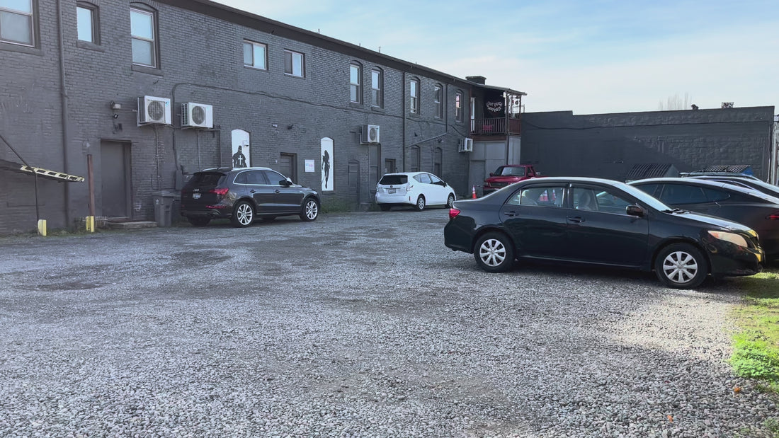 There is a paved lot at the corner of Houser Way and Wells Ave, but it may pose a challenge if you use a mobility aid, as there are railroad tracks to cross to get to the shop.