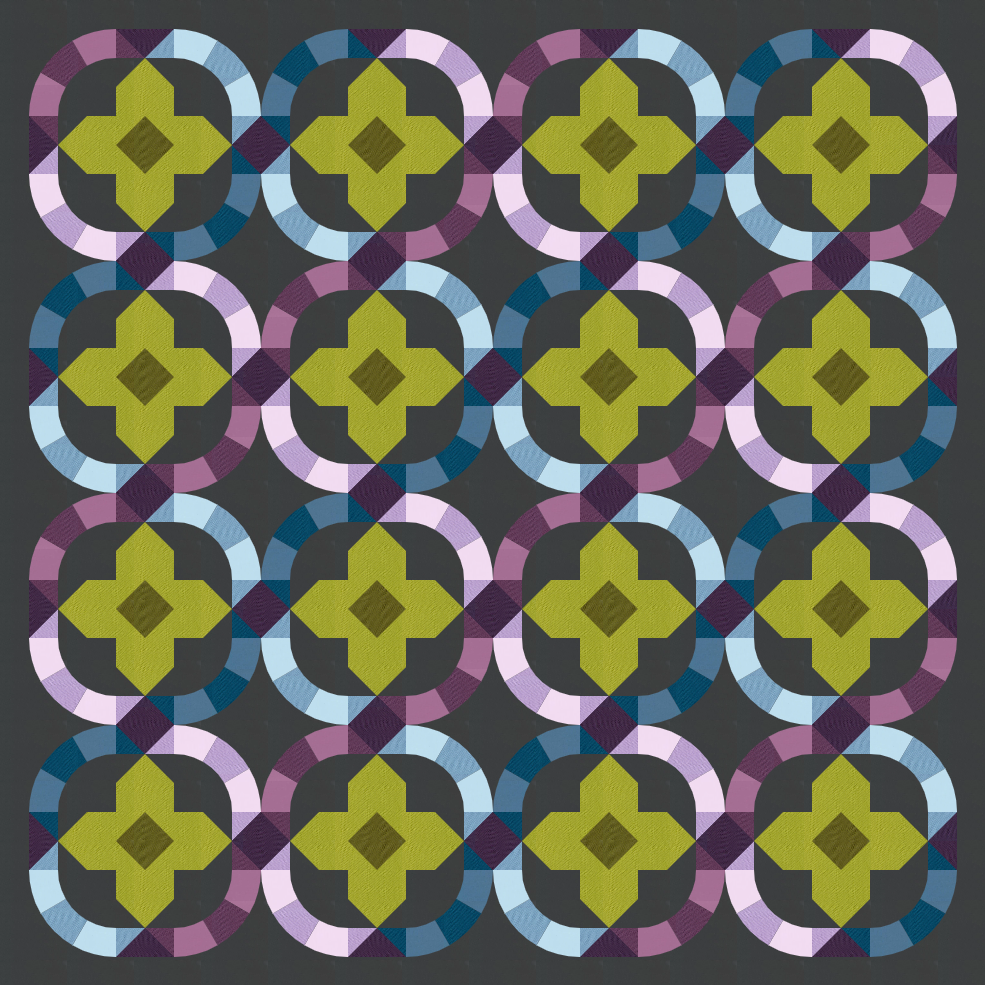 The Moonbeam quilt pattern is a fun modern take on the double wedding ring quilt! This quilt pattern is perfect for giving curves a shot. This quilt is made with our signature Wyldwood Creative color pallet. We love the moody tones!
