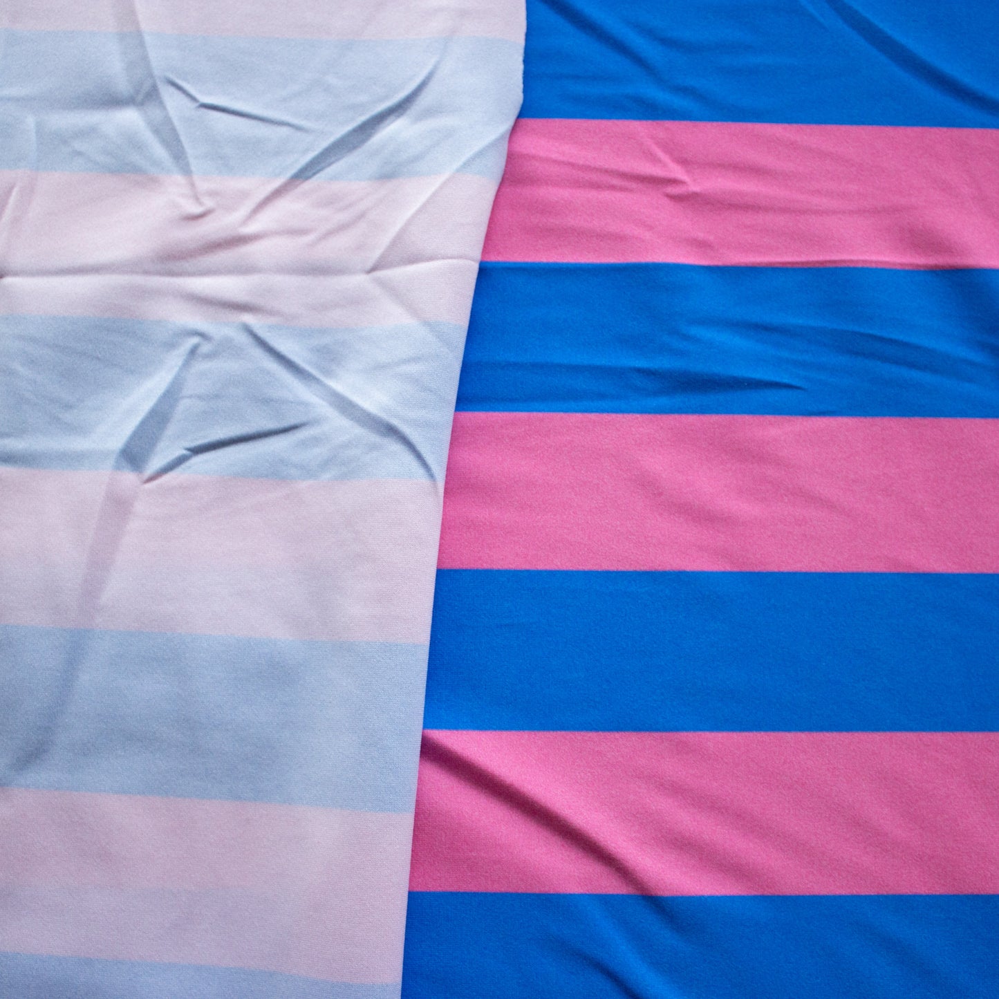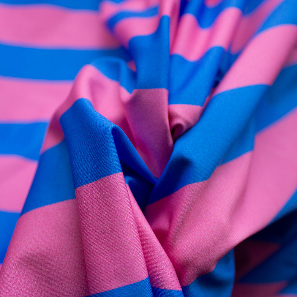 Moisture-wicking tricot knit. Smooth hand, opaque. This is a knit ideal for leggings, activewear clothes, sports tanks, swimwear, and dancewear.
